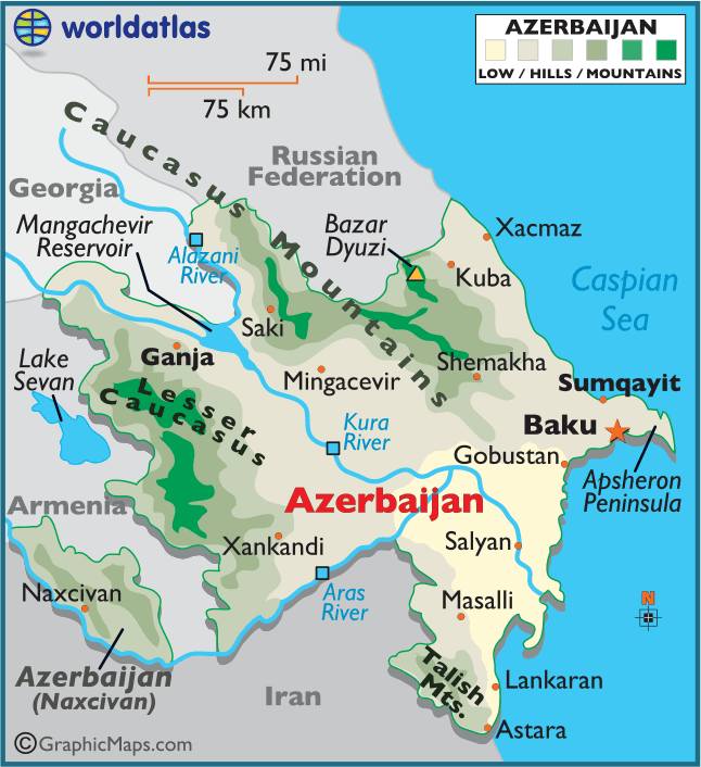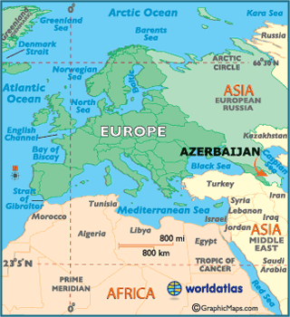 A Azerbaijão é um país transcontinental. Considerado com estando na Europa e Ásia, apesar de suas características sociais se assemelharem mais as europeias.