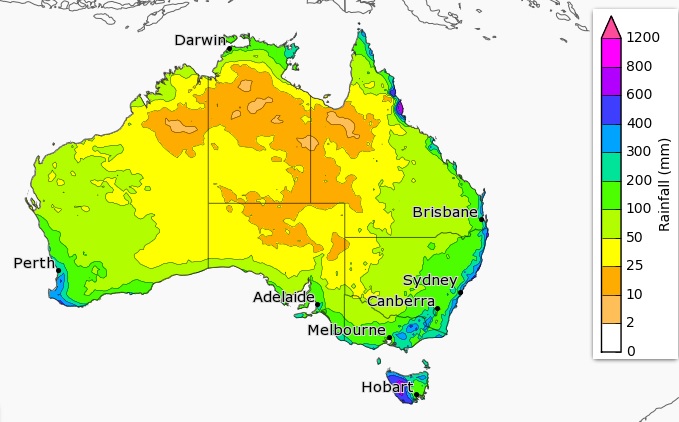 Uma rápida olhada na nos mapas temáticos da Austrália – Temperatura média e Índice pluviométrico médio do outono – Para identificarmos onde a olivicultura é possível.
