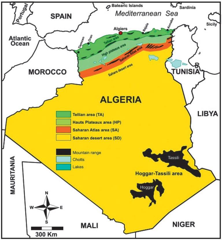 A Argélia é um país com costa no mar mediterrâneo e possui condições ideais para o cultivo de oliveiras em suas regiões próximas ao mar, pois o restante do território é dominado pelo deserto do Saara.