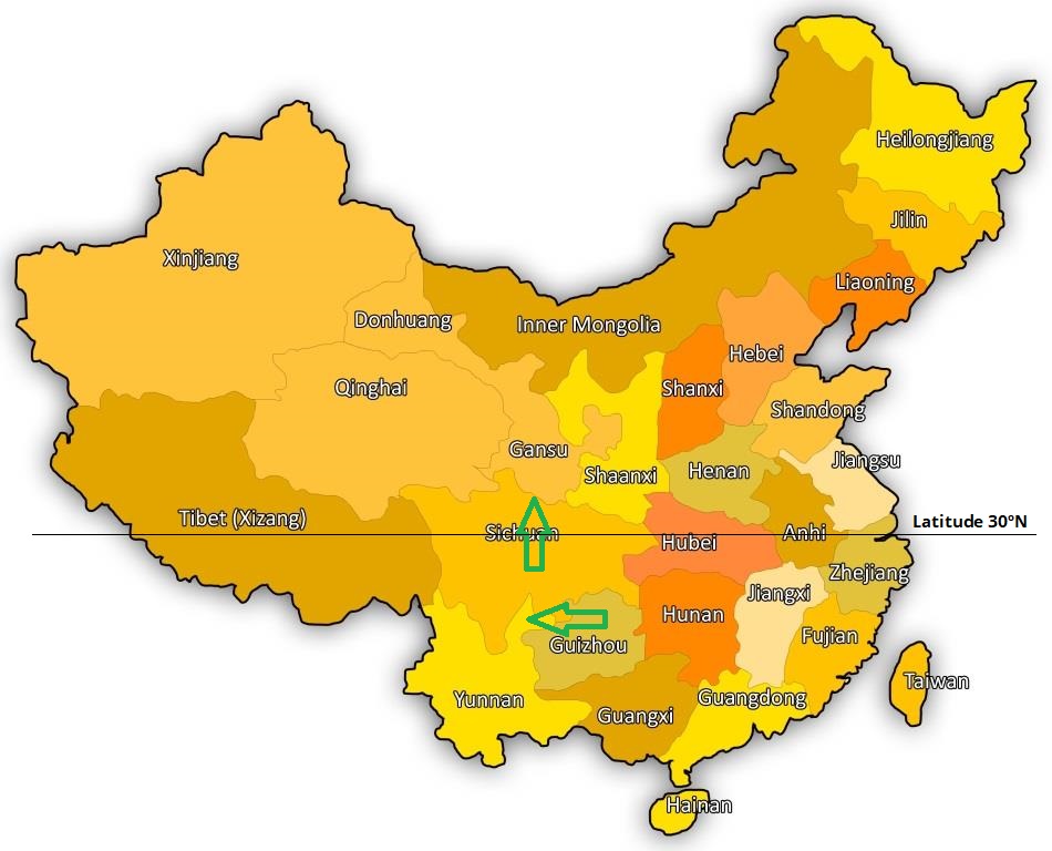 A olivicultura na China de desenvolve principalmente em duas regiões: no sul da província de Gansu, no vale do Rio Bailong; e no Vale do Rio Jinsha (Rio das Areias Douradas) que fica na fronteira entre as províncias de Yunnan e Sichuan.