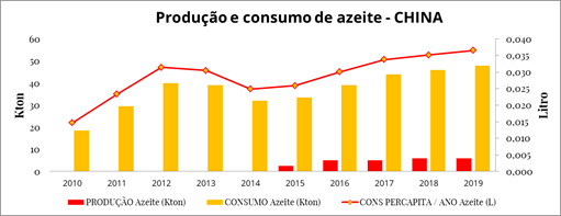 Com toda informação acima, percebe-se que o azeite está longe de ser um produto de destaque no país, e a obtenção de dados é muito difícil. A fonte mais confiável é a FAO (Organização das Nações Unidas para a Alimentação e a Agricultura), com os dados abaixo.