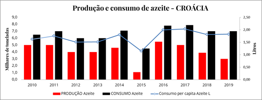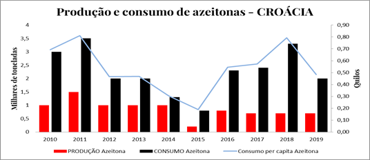 Produção e consumo de azeite e azeitonas da Croácia