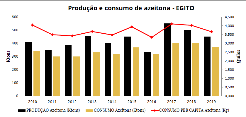 Produção de consumo de azeite e azeitonas no Egito