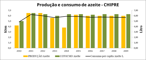 Produção e consumo de azeite e azeitona de mesa