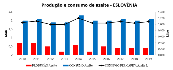 A Eslovênia é vizinha de grandes produtores de azeite, e muito próxima da região onde se atribui a domesticação da oliveira para cultivo.