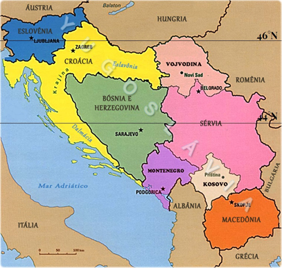 Na figura abaixo aproveitamos para destacar a área do País conhecido outrora como Iugoslávia.