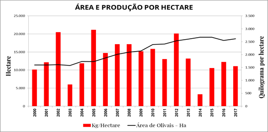 Para entendermos melhor esse número, no mesmo ano e ainda segundo a FAOSTAT, os países produtores da União Européia ocupavam quase 5 milhões e 29 mil hectares com oliveiras, mas com uma produção pouco acima de 2,3 toneladas de azeitonas por hectare.