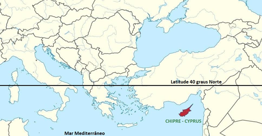 O Chipre é terceira maior e mais populosa ilha do mar Mediterrâneo, ficando quase “ao fundo” deste.