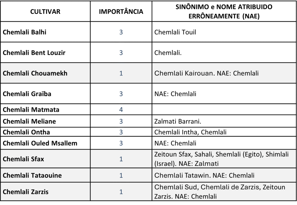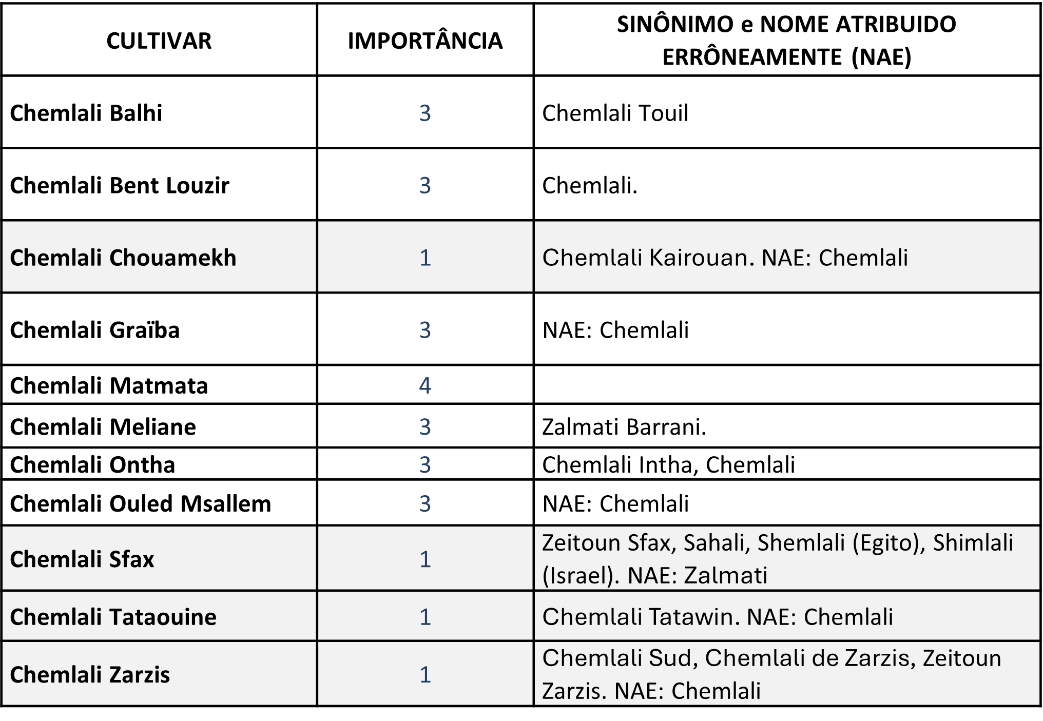 A Olivapedia prioriza a publicação de cultivares com graus de imoportãncia 1 e 2, contudo, devido a importância da variedade Chemlali, publico esses 4 cultivares, inclusive pelas suas semelhanças.