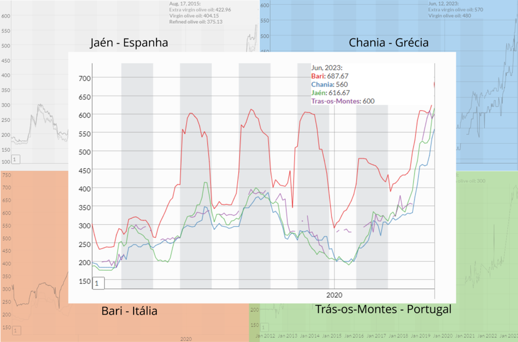 – Muitos engarrafadores de azeite não contam apenas com a produção do próprio país para colocarem seu produto no mercado. Países com menor tradição vende seu azeite a engarrafadores para que estes produzam seu blend. Esse mecanismo foi contado na publicação Oliveiras pelo Mundo: ITÁLIA (Italy) – OLIVAPEDIA. – Mesmo com as ações de cobertura da baixa produção da Espanha, os preços, que já sofreram uma expressiva alta nos principais mercados, devem continuar aquecidos.