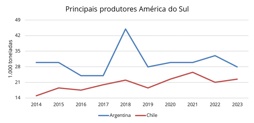 Observação: Não foi considerada a produção de azeite no Brasil do Brasil, pois em 2023, apesar do franco crescimento, ainda não atingiu sequer 1 mil toneladas. Outro ponto é que apesar do investimento em unidades fabris (europeias e brasileira – Atlas), a produção ainda é muito focada em um produto gourmet.