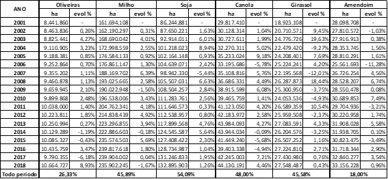 Apesar de um crescimento pequeno em termo de área plantada, o resultado em termos de produção de azeitonas foi bem melhor. Entre 1998 e 2018 foi observado um crescimento de 45,24%. Entre 2001 e 2018 o crescimento foi de 40,6% versus um aumento de área plantada de apenas 26,33%… …mas esse é um assunto para outra publicação!