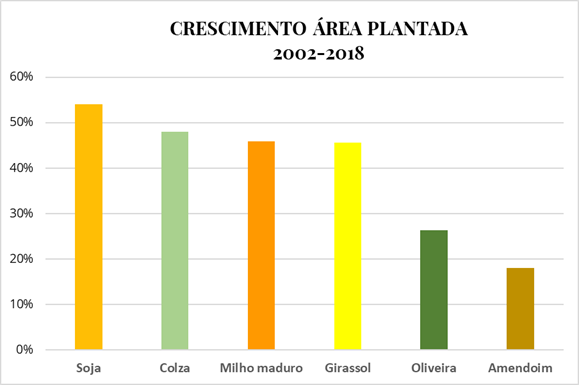 Como mencionado acima, a diversidade de usos possíveis para os óleos vegetais, de menor custo de aquisição, até mesmo para biodiesel, explica fundamentalmente o crescimento maior de quase todas as culturas se comparado com a olivicultura.