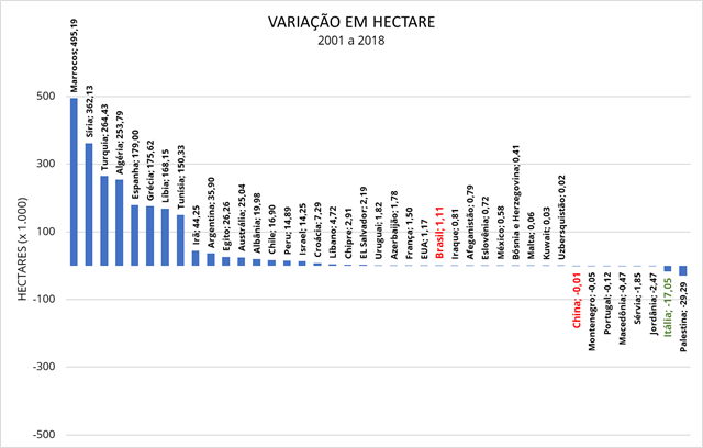 Variação em hectares