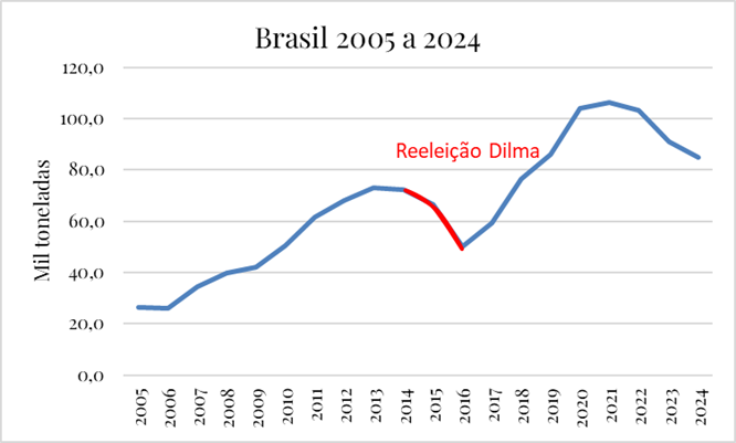 Observação: O ano de 2024 ainda é uma previsão.
