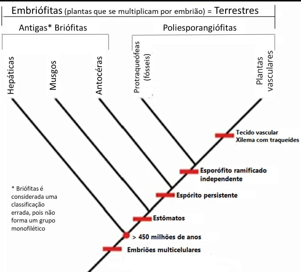 Essa migração começou com as a Hepáticas, Musgos e Antocéros. Todas elas em meios úmido, quer seja: solos, rochas, montanhas, etc. Em comum elas possuem “canudos” utilizados para transporte de nutrientes. Longe de se tratar de estelos (xilema e floema – estruturas vasculares), esses tubos foram fundamentais para o transporte de nutrientes e desenvolvimento na vida terrestre.