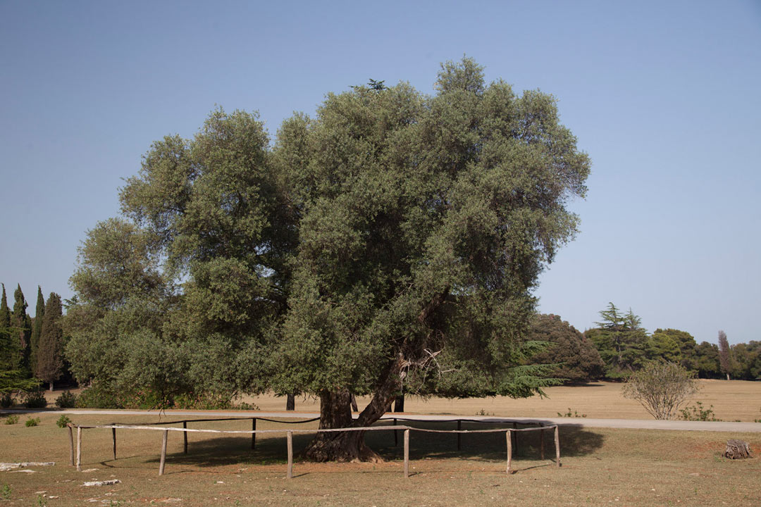 Compete com a oliveira da ilha de Pag outra árvore na ilha de Brijuni, plantada por romanos na época do domínio do império, que também data com 1.600 anos, contudo essa que no ano de 1986 foi dividida por um raio. Após muita atenção e tratamento VIP, ou VIO (Very Important Olive Tree), a árvore voltou a produzir uma média de 30 Kg de azeitonas que rende um pouco mais de 4,5 litros de azeite por ano.