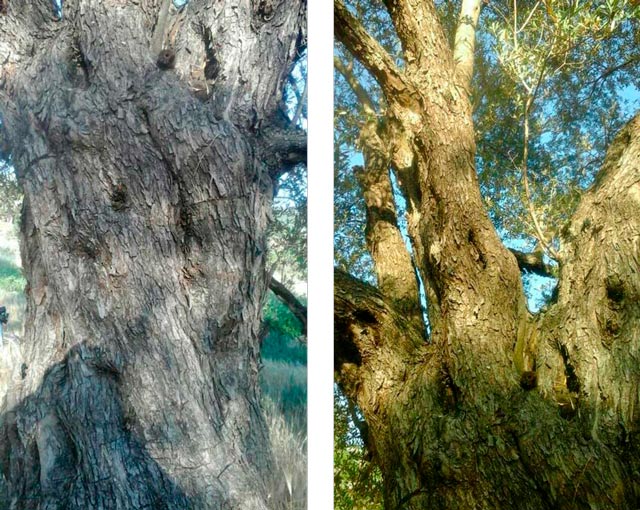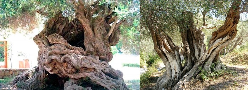 Assim sendo consideraremos sempre as idades estimadas publicadas. Certamente não estão muito erradas, pois é só comparar a aparência de uma oliveira milenar com uma de “meros” 150 anos, no meio da imagem abaixo.