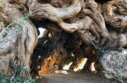 Essa oliveira possui um perímetro de quase 7 metros, e possui formas espetaculares em seu tronco único.