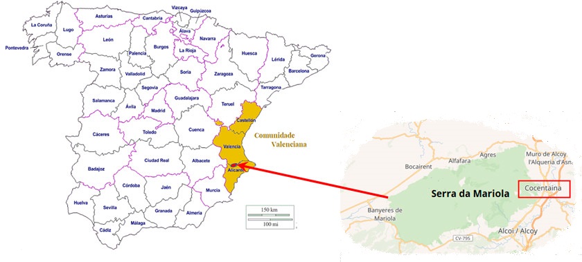 Sua origem é indicada como sendo na Serra da Mariola, próximo a Conceitana.