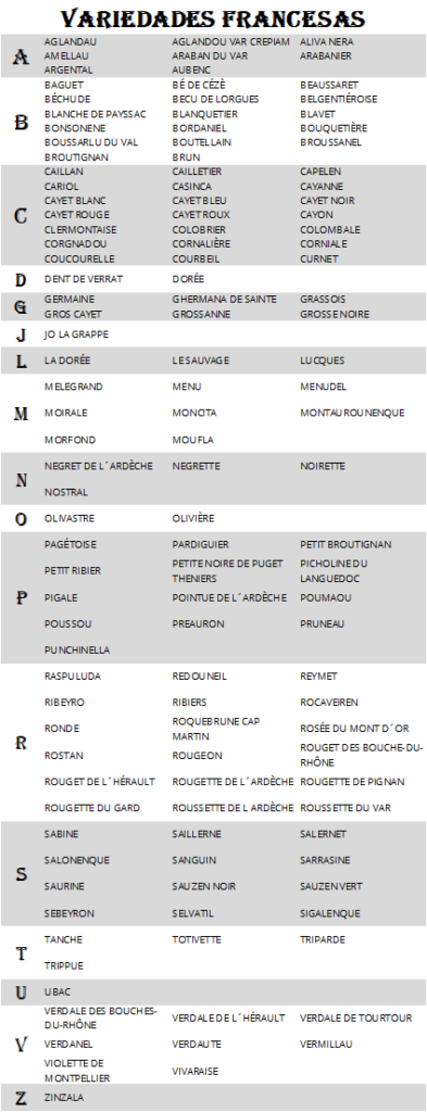 Apesar da França não possuir números expressivos na produção e consumo, principalmente per capita, é o terceiro país com mais variedades autóctones. São aproximadamente 129 cultivares registrados (2019).
