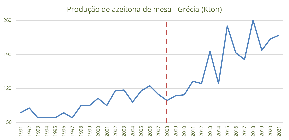 Evolução da produção e consumo de azeitona na Grécia – IOC