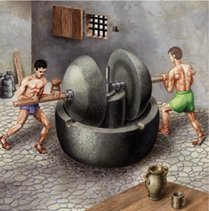 Com algumas adaptações, o conceito permanece nos moedores de azeitonas a pedra modernos.