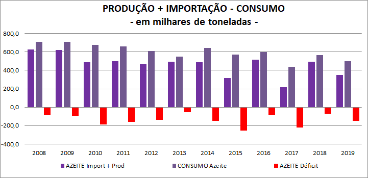 Abaixo um quadro comparativo onde somamos todo azeite declarado como importado + produzido e subtraimos o consumo… Os números ainda não “batem”. De novo: Leiam Exta Virginity.