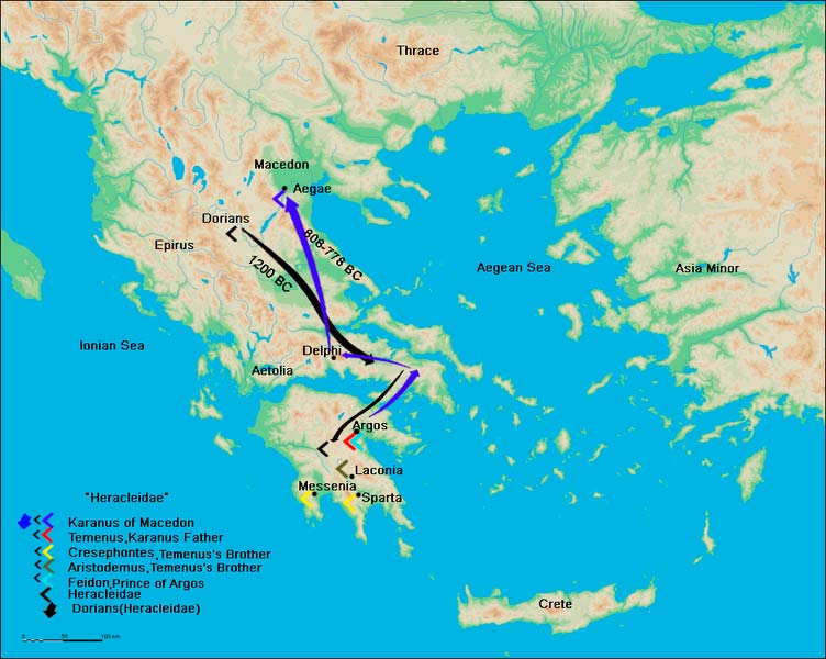 O fundador do reino da Macedônia foi o rei Carano (808 -778 a.C). Estabeleceu sua sede na cidade atualmente conhecida como Vergina – situada no norte da Grécia, na região da Macedônia Central).