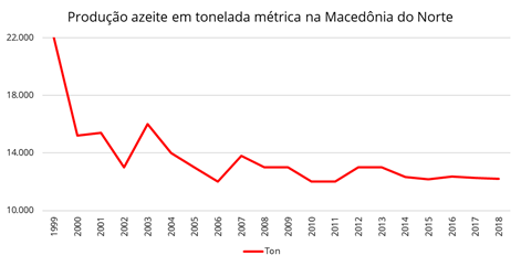 Os dados históricos para olivicultura na Macedônia do Norte não apresentam tendência a crescimento, contudo também sem uma redução significativa. Ao contrário da Grécia que ao longo dos anos após a independência organizou o mercado de azeitonas e azeite de oliva como um dos principais produtos nacionais. A Macedônia ainda não “embarcou” nessa visão, talvez pautada em uma produção mais imediata de outros produtos e por possuir uma área agriculturável relativamente pequena.