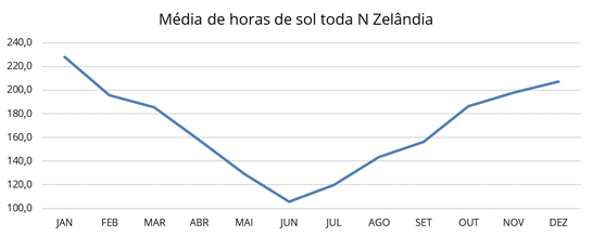 O fato de todo o território estar, de certa forma, próximo ao mar e ocupar uma pequena faixa de latitude, garante ao país um clima ameno e estável a maior parte do ano. No entanto o território da Nova Zelândia é bastante acidentado, logo as grandes diferenças de temperatura ficam por conta da variedade de altitude. Seu ponto mais alto é o “Aoraki-Mount Cook” com 3.754 m.