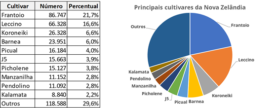 Hoje existem aproximadamente 400.000 oliveiras na Nova Zelândia.