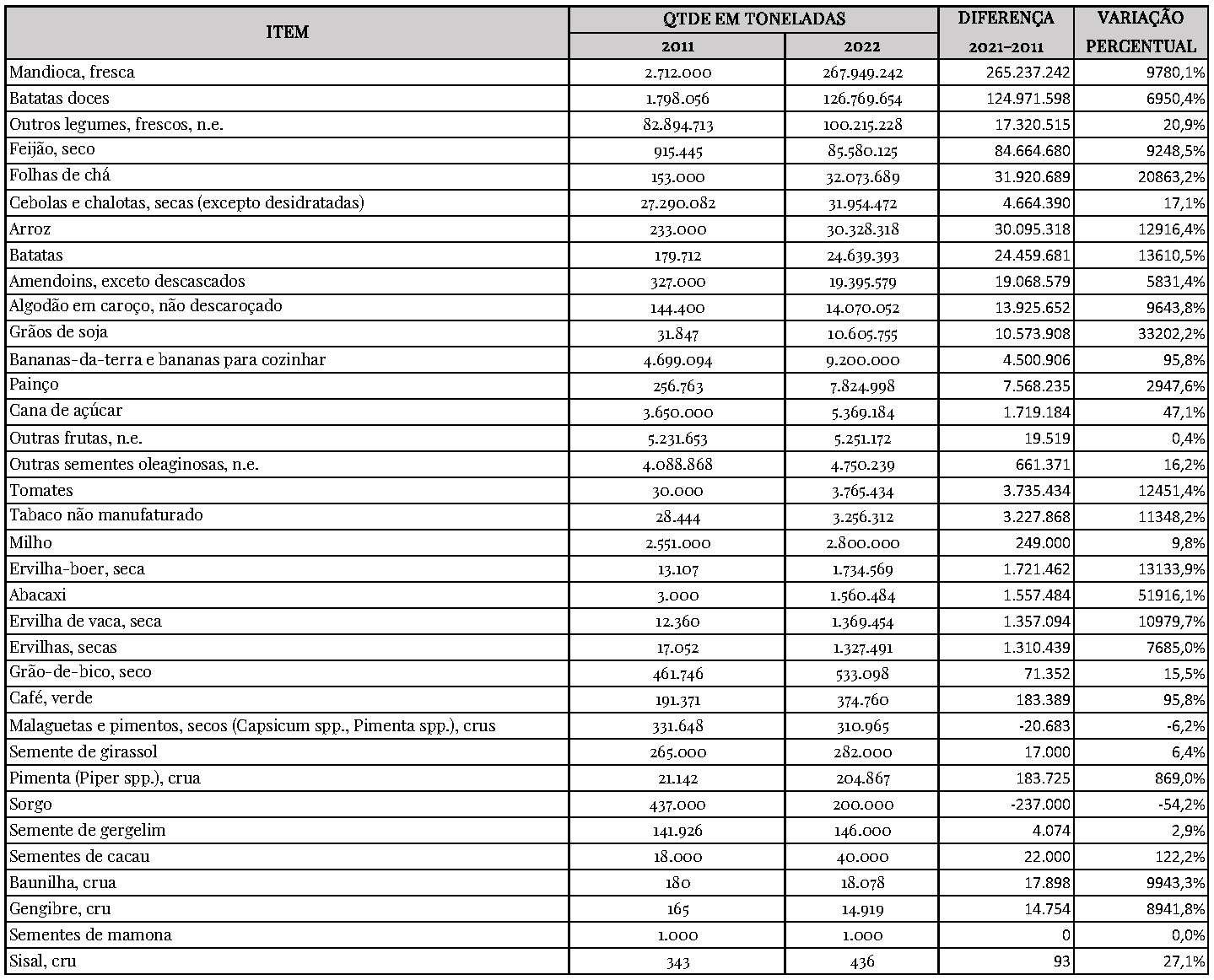 Os dados acima são da FAOSTAT – ONU.