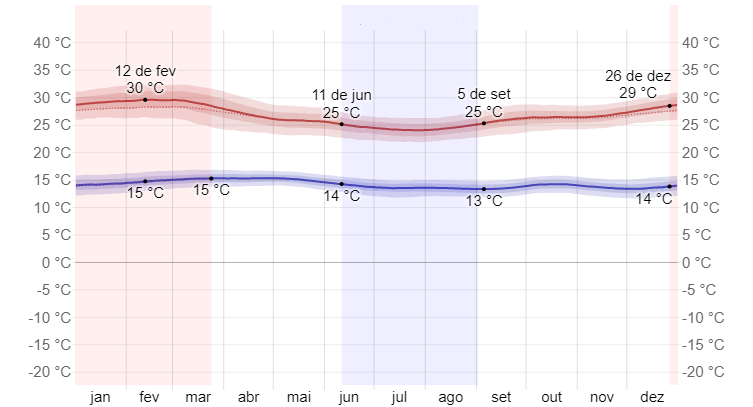 * A queda de 1ºC a cada 150M de subida é apenas uma referência simplificada, pois diversos outros fatores implicam na real temperatura, como solo, vegetação, correntes de ar, etc..