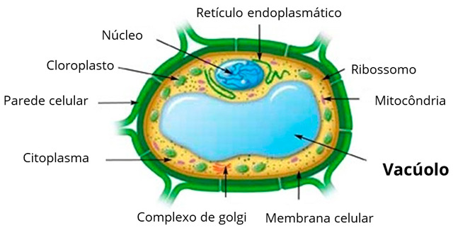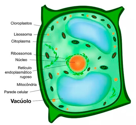 Os vacúolos são componentes presentes em todas as células vegetais e em alguns animais (normalmente em tecidos adiposos), algas e fungos. Quando presente nas células dos animais são mais numerosos, contudo, representa uma fração pequena do volume celular. Já nas células vegetais seu número é menor, entretanto com volume que varia de 50 a 90% de toda a célula. Suas principais funções são a manutenção do citoplasma saudável (reciclando resíduos celulares), manutenção do PH da célula e controle osmótico (osmose).